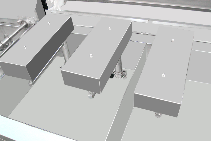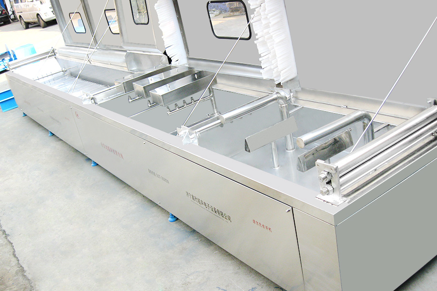 該設備有上下料網(wǎng)帶、超聲波清洗工位、噴淋漂洗工位、高壓風切、熱風烘干工位、溫控水加熱系統(tǒng)、風機、溫控空氣加熱系統(tǒng)、移動式風刀、PLC+觸摸屏控制系統(tǒng)、管路系統(tǒng)及智能電器控制系統(tǒng)等組成。自動進排液和自動加溫系統(tǒng)完全實現(xiàn)了無人干預,自動運行,很大程度上降低了工人的勞動強度。先進的霧氣處理系統(tǒng)可以將清洗時產(chǎn)生的霧氣冷凝回流,空氣經(jīng)過濾和活性炭吸附后排出。