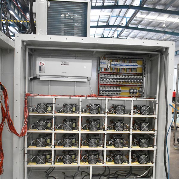 該設備包含超聲波清洗槽×5、超聲波振板、支架、超聲波發生器、水分器、防爆空調、防爆連接電纜以及進排水系統、防爆箱、智能防爆電器等組成